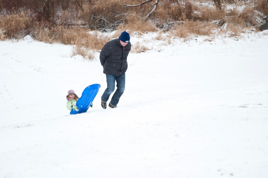 We found some sleds and headed over to the other side of the farm to do a little sledding.